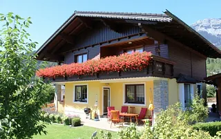 Unser Appartement „Blick-Hauser-Kaibling“ im ersten Stock bietet einen großen Balkon und ein geräumiges Badezimmer.
