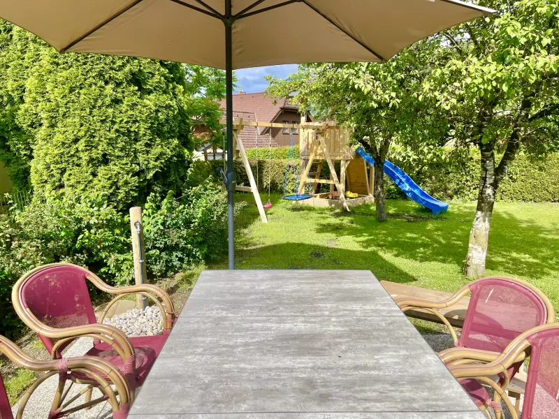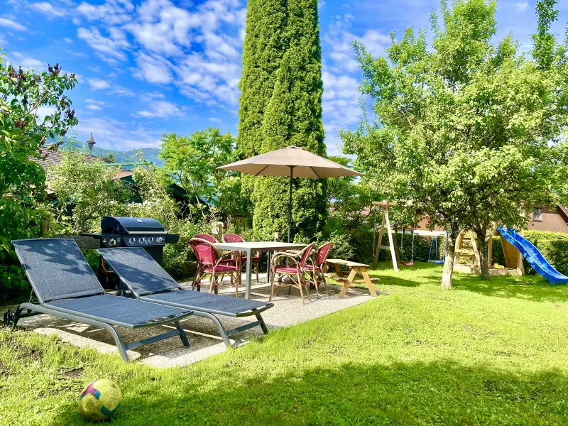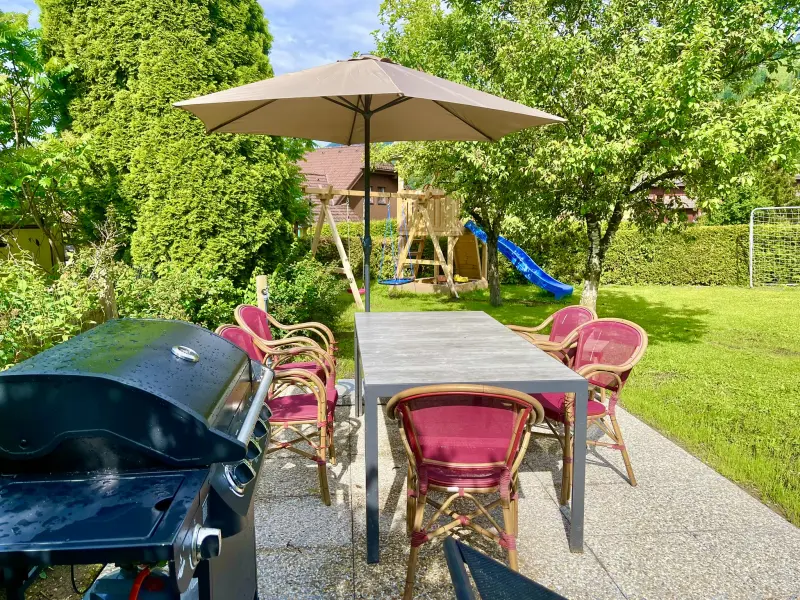 Da sich das Appartement im ersten Stock des Hauses befindet, haben Sie einen eigenen Balkon mit herrlichem Panoramablick. Sie können aber auch unseren großen Garten (350 m²) benutzen. Gartenmöbel und ein Griller werden für Sie bereitgestellt. Der Garten ist eingezäunt und daher auch für Hunde gut geeignet, die in unserem Haus ebenfalls herzlich willkommen sind.